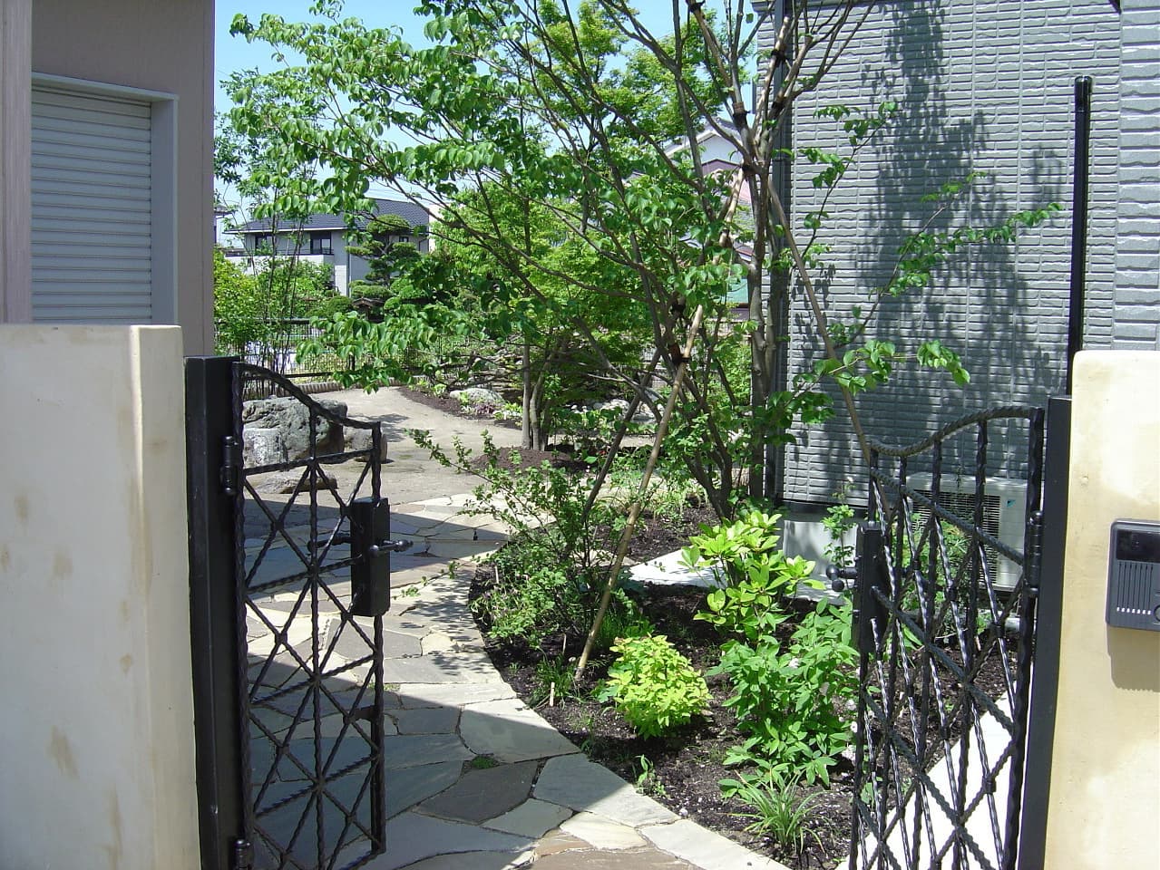 施工例リストに戻る 西尾市K様邸 施工前 御要望はおじいさまが大事にしている石をつかって欲しいということでした。その数は10石以上。いわゆる和物の石。どのように使うか?初めての御要望で楽しく考えさせていただきました。 施工後 オーダーのアイアンの扉を開けるとヨークストーンのアプローチがあります。 ヤマボウシ、モミジのトンネルをくぐって玄関に向かう気持ちの良い空間です。 庭の一番奥には物干し場を兼ねたウッドデッキをつくりました。 この庭には使っていない井戸水があったのでポンプを設置し、おじいさまの石から水を流し、見ても楽しい音も気持ち良く、夏は水遊びができる池をつくりました。 水はデッキの基礎石の部分まで来るようにしてあります。デッキから水の流れる様子をみるのは良い感じです。夏になって子供達が遊んでくれるのを楽しみにしています。 施工例リストに戻る ページトップへ