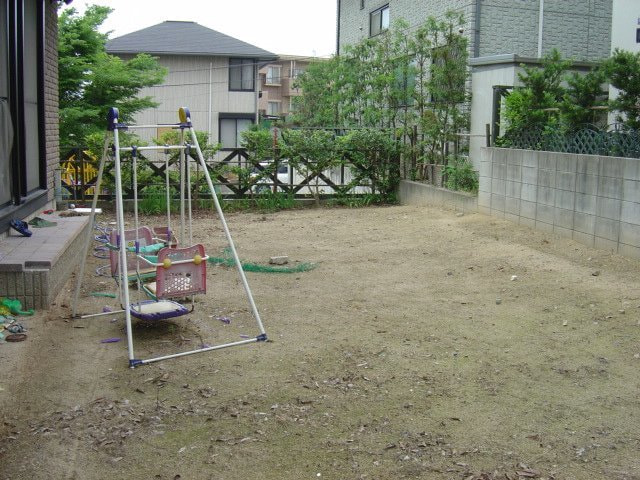 写真では写っていないのですが、テラスから一番離れたところにブランコを置き、息子さんが楽しく使ってくれているそうです。
